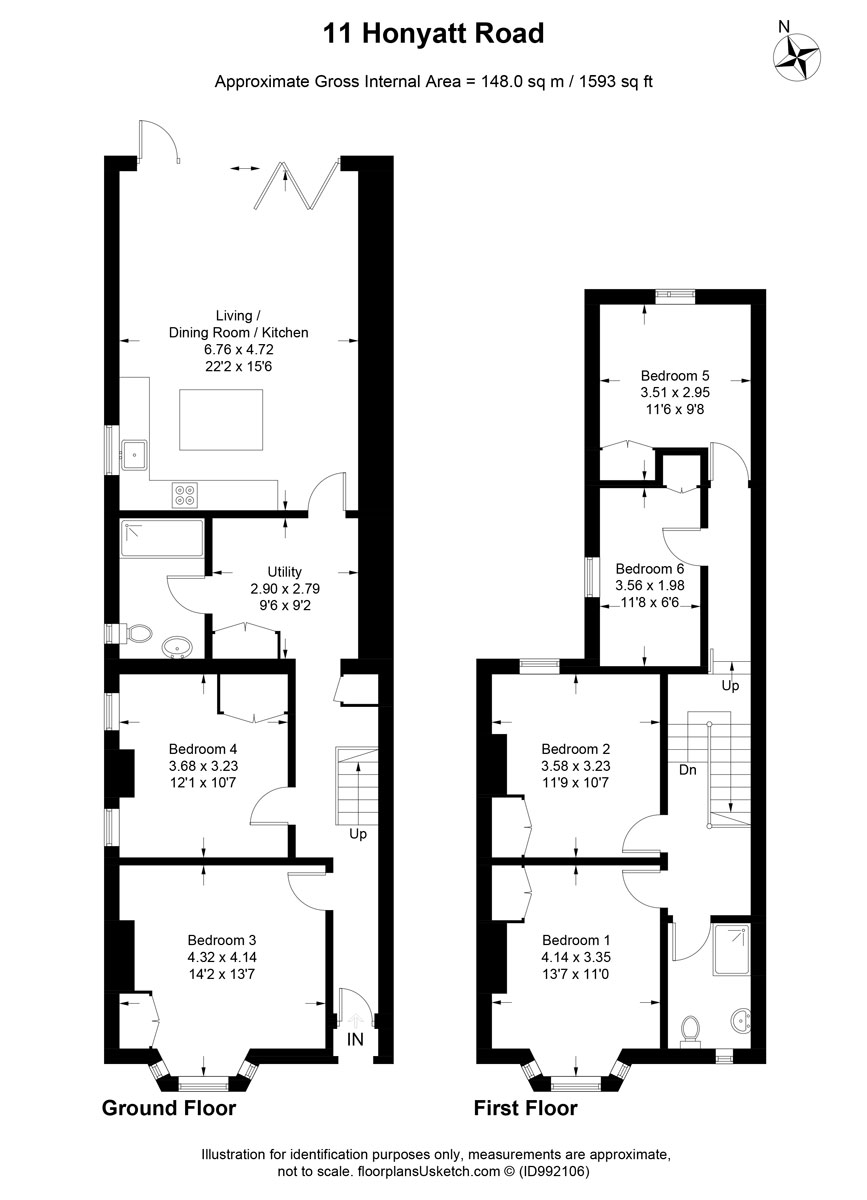 Four bedroom semi-detached house set over two floors. 3 first floor bedrooms, one ground floor. First floor shower [more]