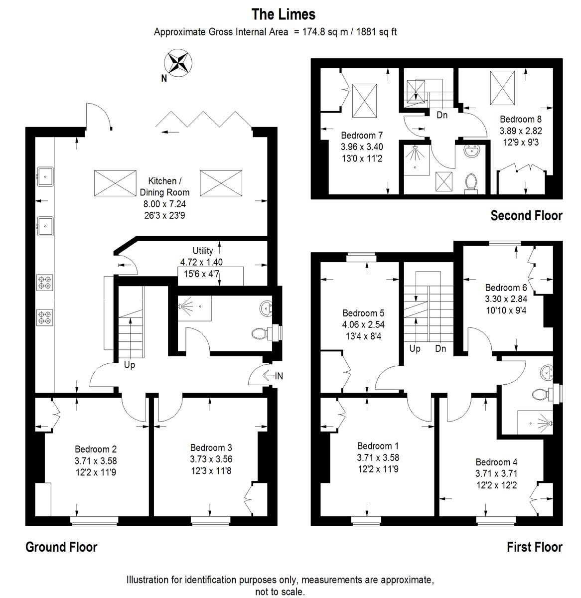 8 bedroom detached house with 3 bathrooms, open plan kitchen reception room, utility, landscaped garden and parking.